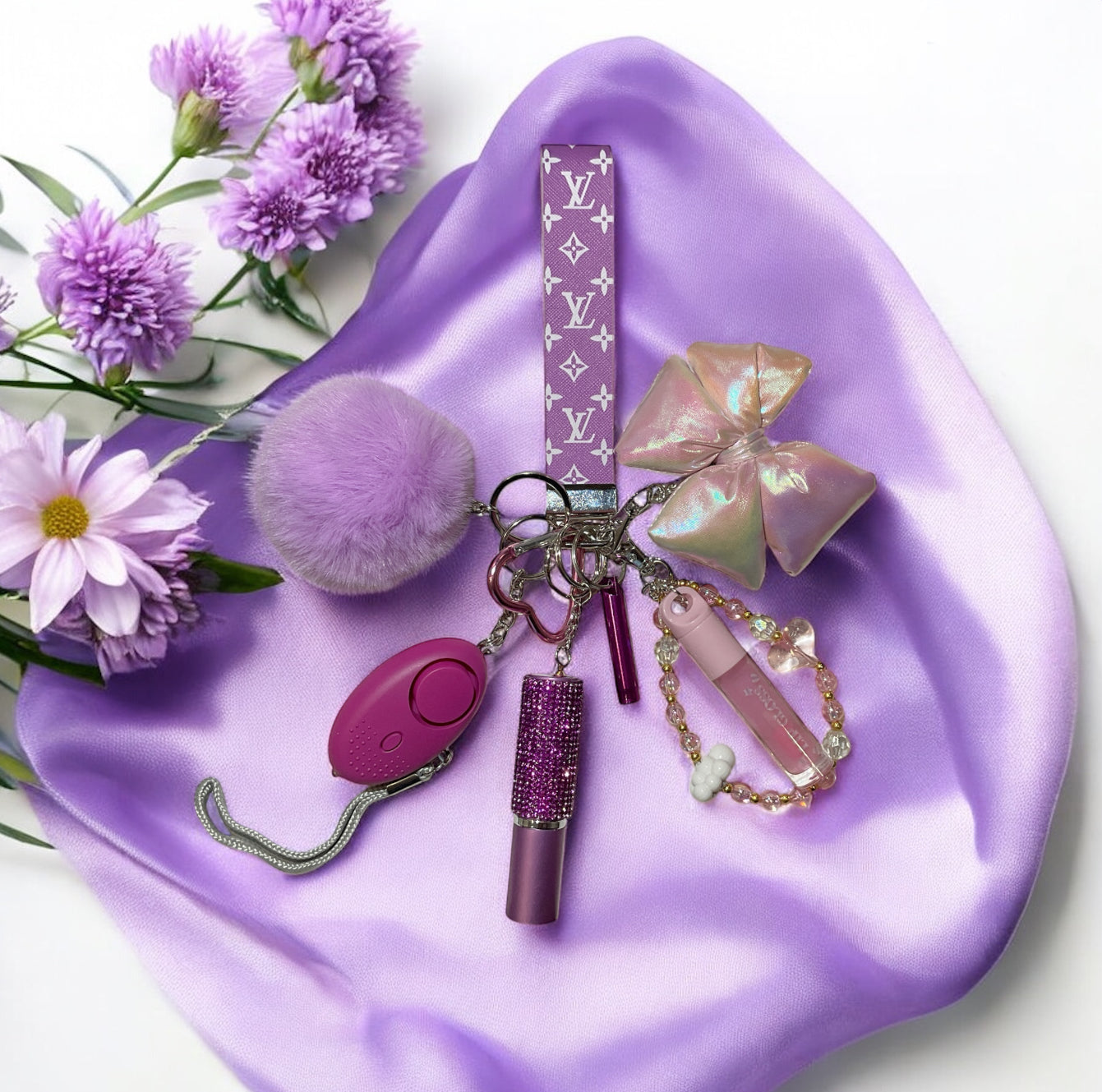 Increase your peace of mind with the LV Teenagers safety keychain. This multi-functional accessory features an alarm with a bright light, a whistle for emergency situations, and a lip gloss, perfume bottle and Pom Pom with bow for added style. Be prepared for any situation while looking fashionable.